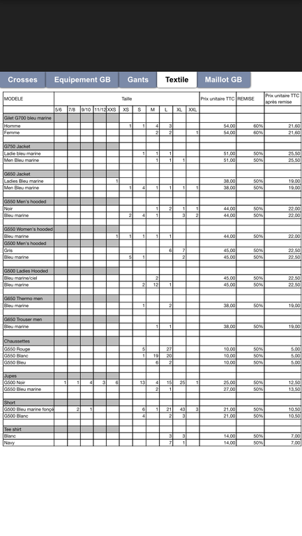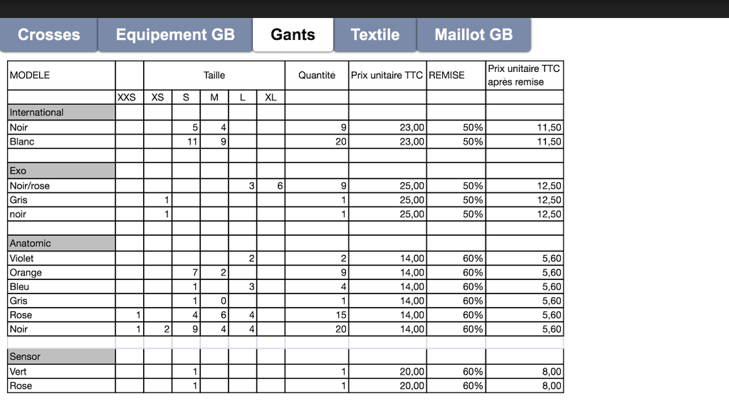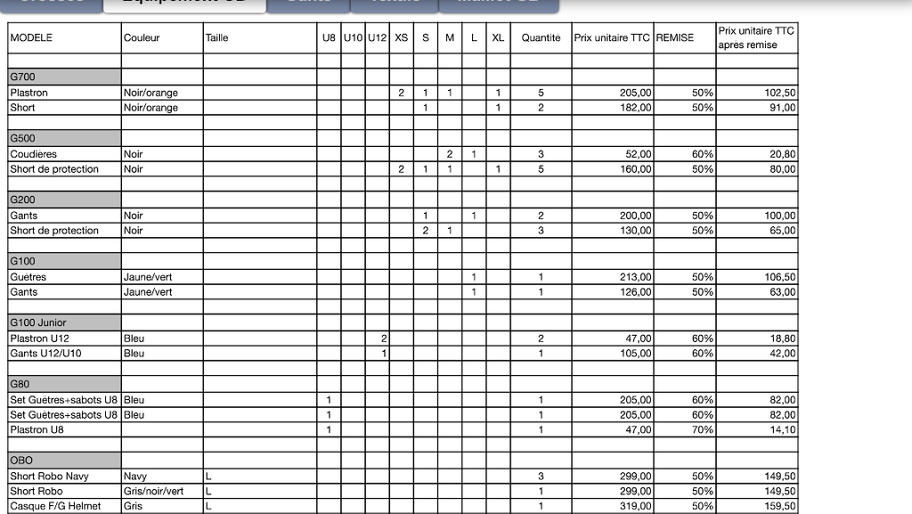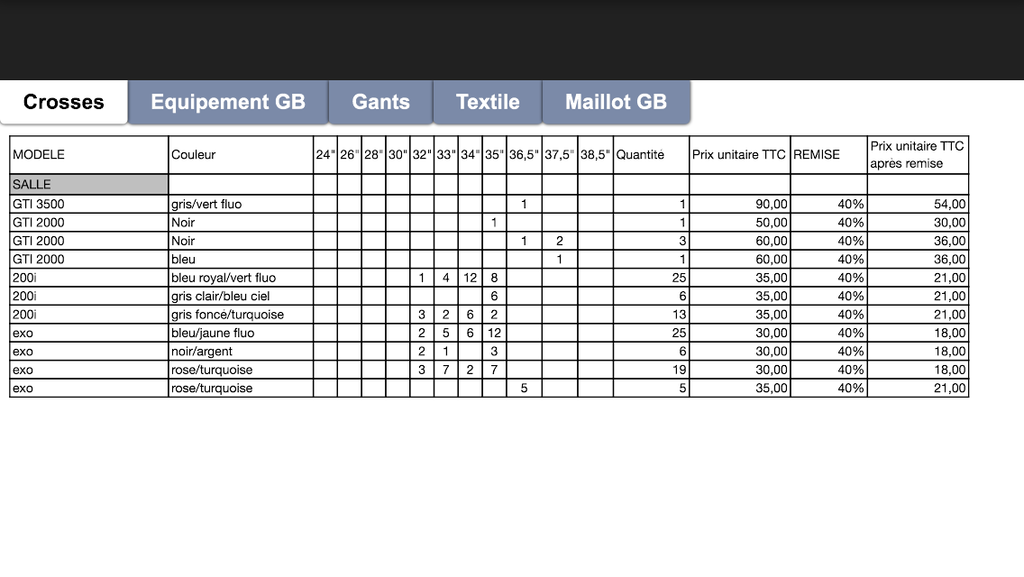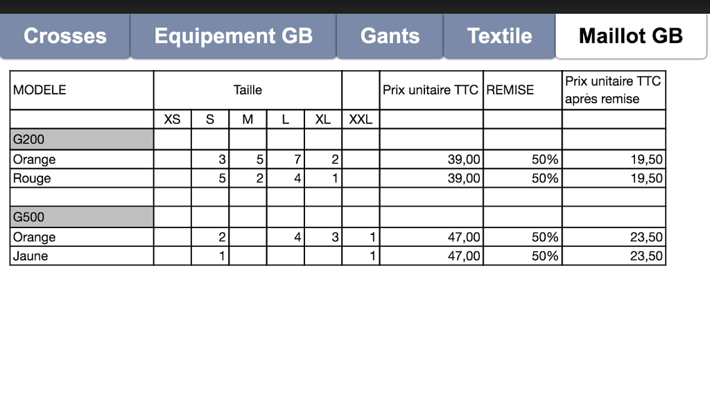 Crosses, gants, matériel de gardien de but, textile et maillot de gardien. Veuillez trouver ci-jointe la liste des promotions d'avril. N'hésitez pas à revenir vers moi si vous souhaitez obtenir un visuel des articles.